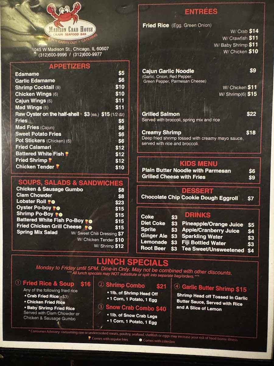 Welcome to Madison Crab House, a vibrant seafood destination nestled in the heart of Chicago. Renowned for its incredible selection of fresh seafood, the menu showcases a delightful variety of offerings, from succulent crab legs to mouthwatering shrimp and crawfish.